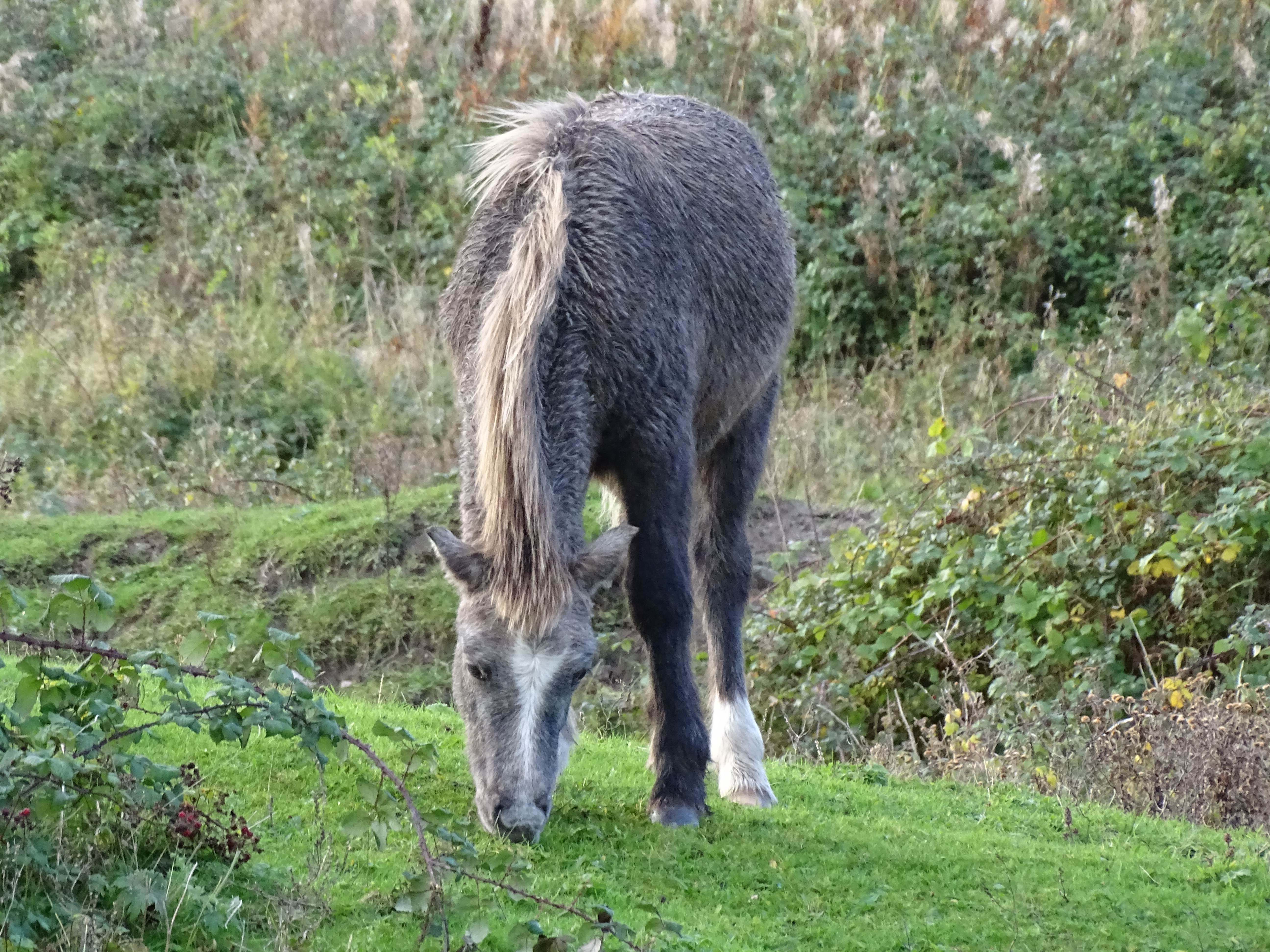 You too could sit on a dragonfly whilst looking for birds and ponies in the RSPB Reserve. Redshanks standing to attention. Curlews and heron searching for food and one of the ponies munching on the grass.