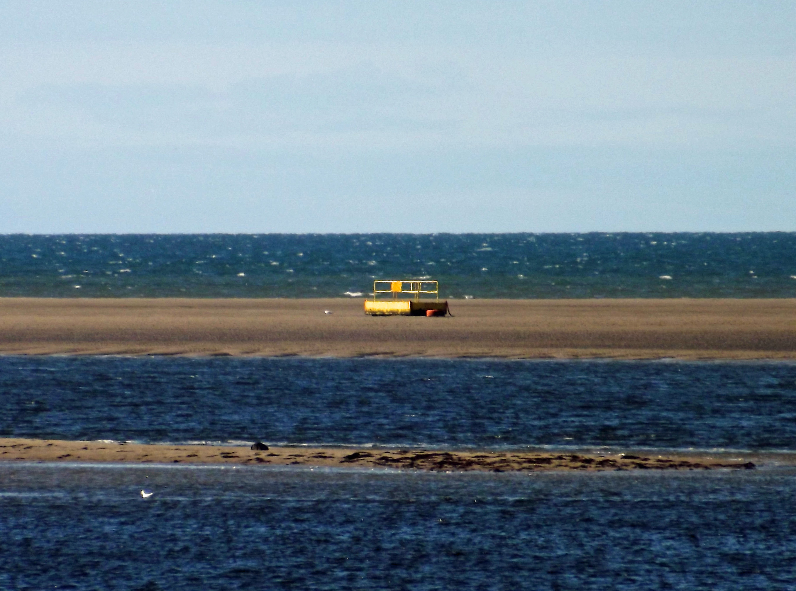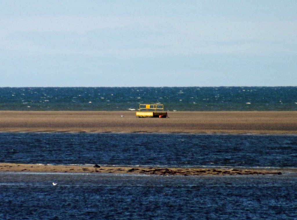 Locals know that that there are rafts permanently sited in the Conwy Estuary in case anyone gets cut-off by the incoming tide. Advice from NCI Great Orme (National Coastwatch Institution Great Orme) states: “Four YELLOW Rescue Rafts are situated at strategic points on the sand banks, if you are cut off you should make your way to one of these and await rescue ….”. See their website for more advice.