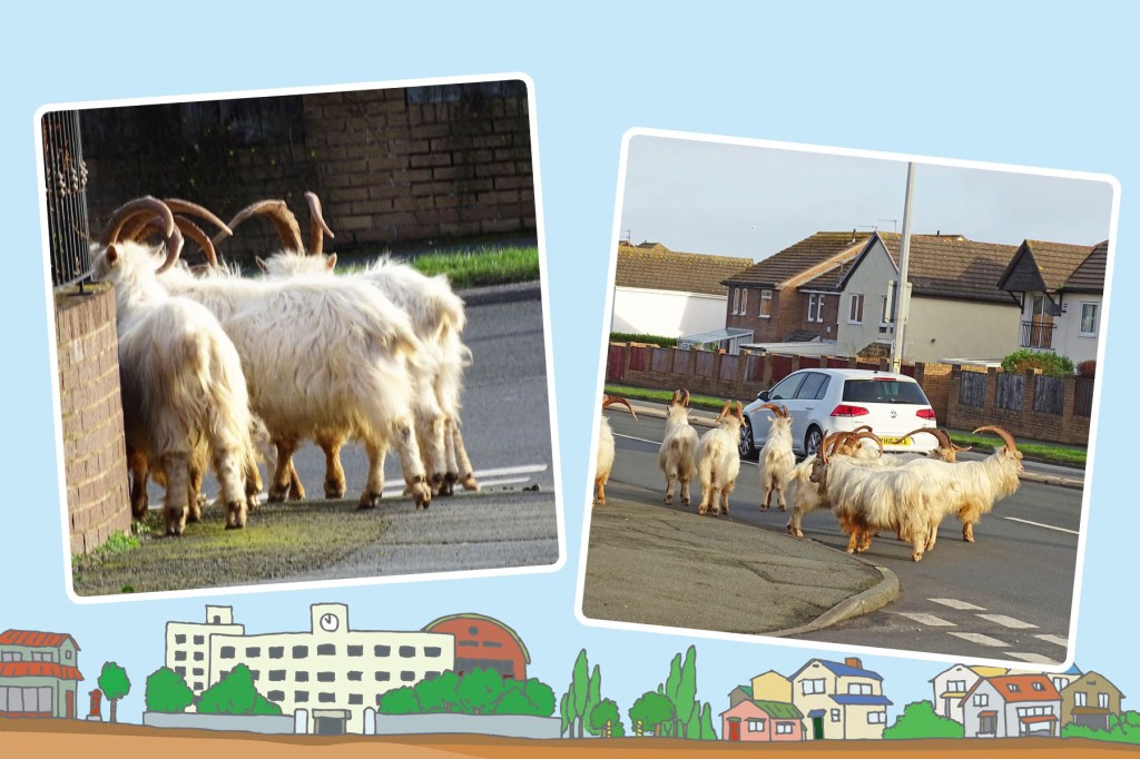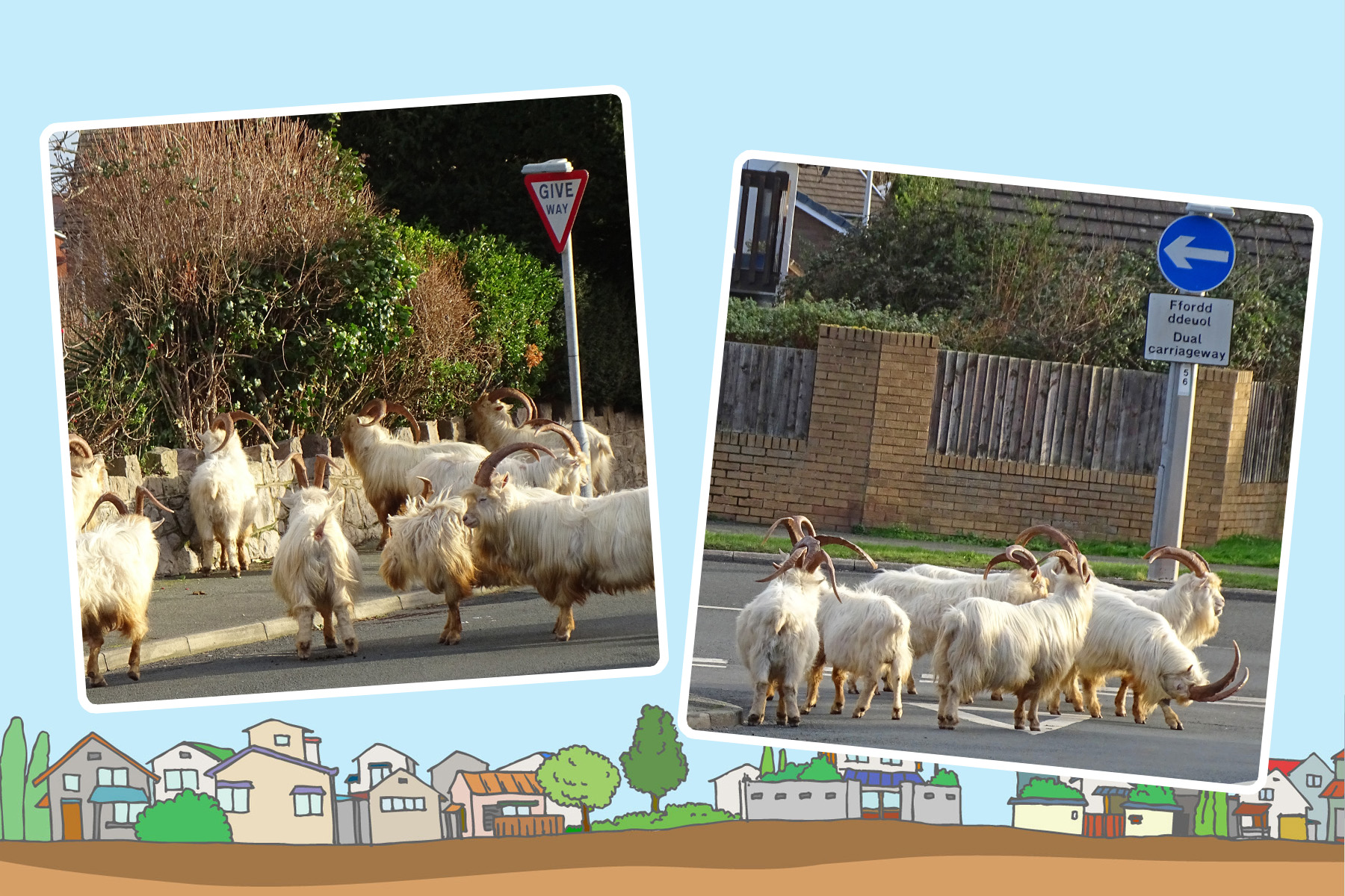 The Llandudno Goats trying to make sense of the road signs. They do quite well with the Give Way sign but when faced with the One-Way sign, it seems that it might be a step too far.
