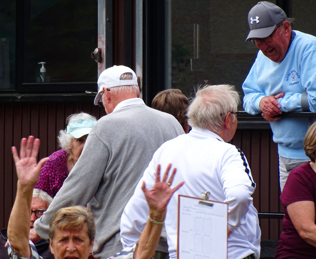 Carole W launches her clipboard into the air in an excited, but fruitless, attempt to start a Mexican Wave whilst Eddie looks horrified at the prospect of being photographed. Meanwhile, Ray tells Lynn one of his jokes and John C appreciates John P’s anecdote.
