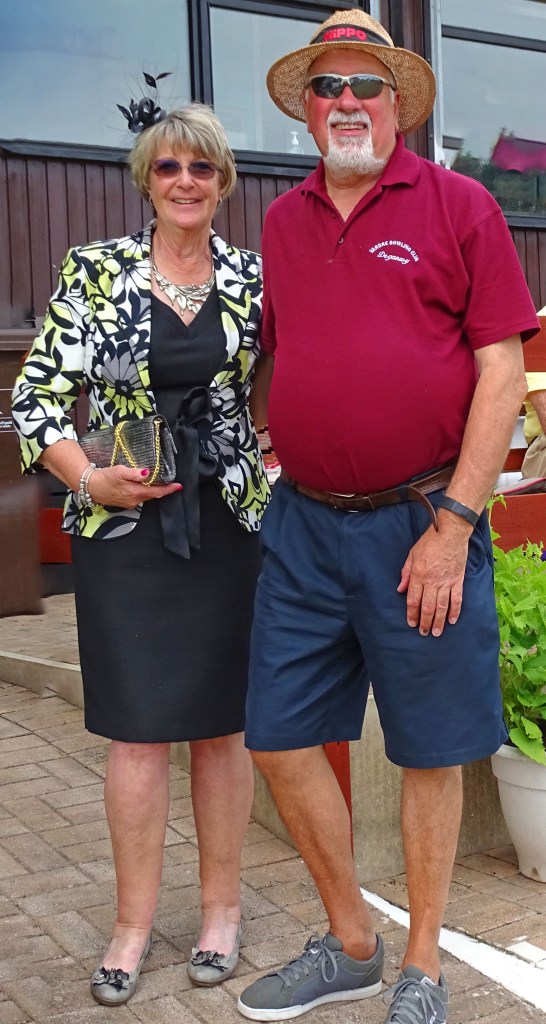 Rumours of a new dress code at the green, for ladies to wear smart dress outfits with fascinators, are just rumours. However, here Fiona models her new bowling outfit whilst Keith demonstrates the slightly less formal approach.