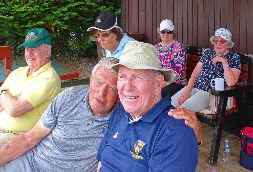 John watches the bowling, which is causing him some amusement, whilst Eddie and Brian have a little sing-song together. Cledwen is just behind and ready to give her score on their singing ability whilst Gay and Clarice, on the bench, add some sort of gravitas to the situation.