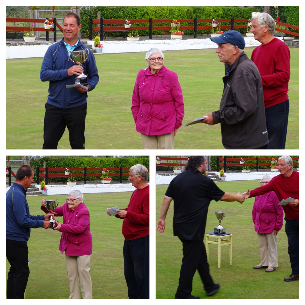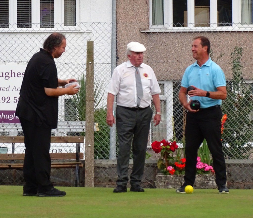 The Quarter Finals, Semi-Finals and Final of the Conwy County Bowling Festival’s “Alun Jones Memorial Trophy” Competition was held on the Vardre Deganwy green last night with the family of Alun Jones in attendance to present the trophy to the Winner Paul Wilson with Callum Wraight as Runner-up. Click Here to visit the Conwy Bowls Festival website (opens in a new tab).