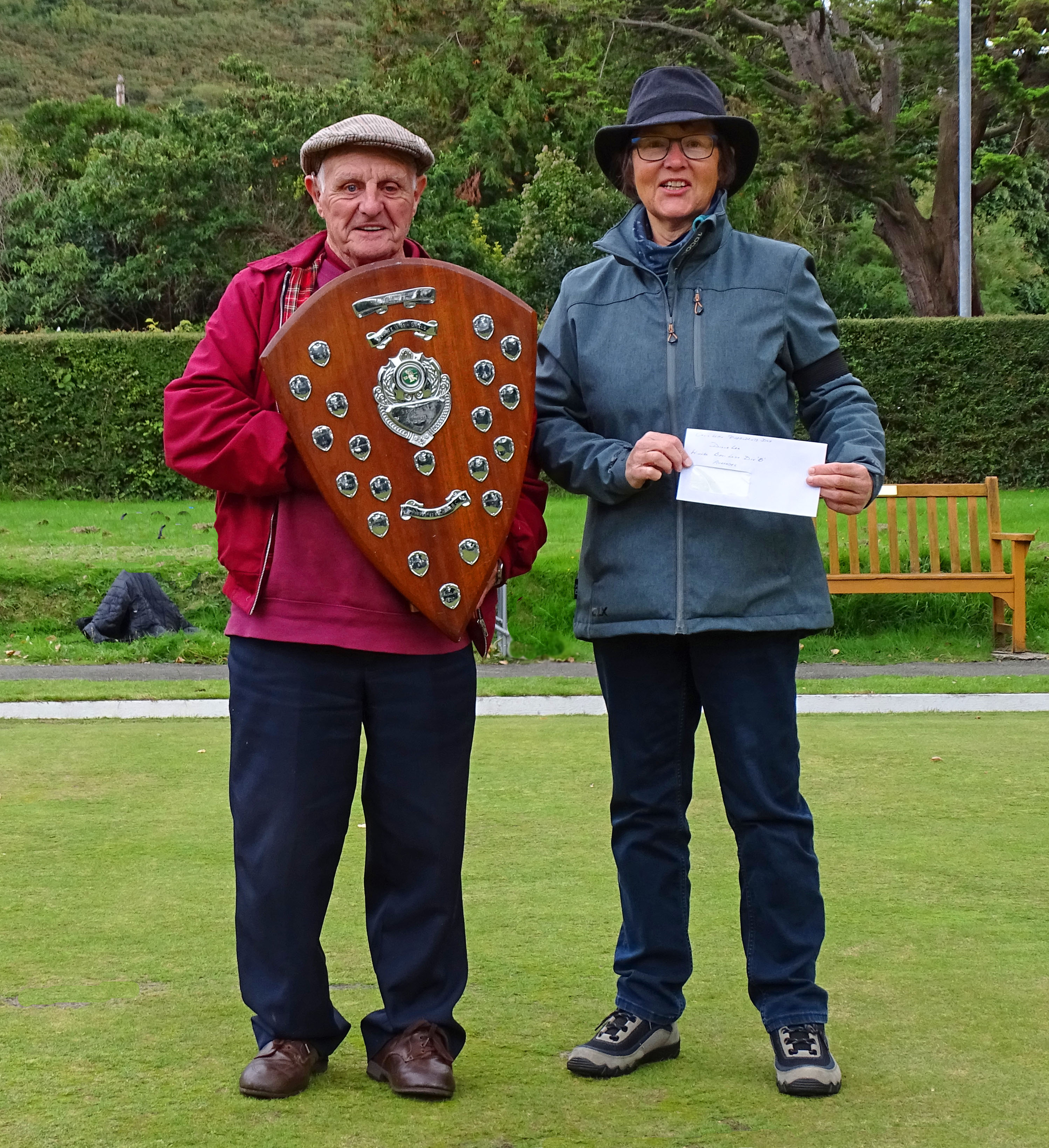 Captain Tommy R received the winner’s Shield from the League President, Roy Mills, on Sunday on behalf of the Vardre Deganwy ‘A’ Team. Some members of the club were also there to watch the Merits final rounds and to give support. Thanks to you all.