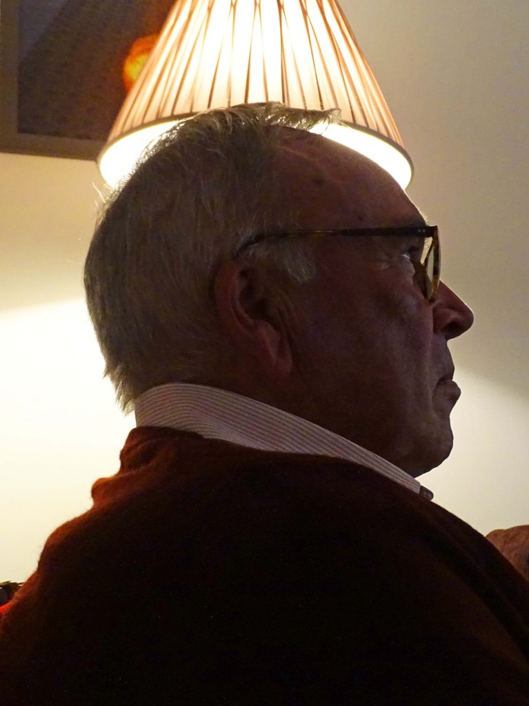 If any of you are wondering what Captain John B is up to when not on the bowling green this Autumn, then here is the answer – he is acting as a sophisticated standard lamp base for different types of lamp shades. Not a bad look at all.