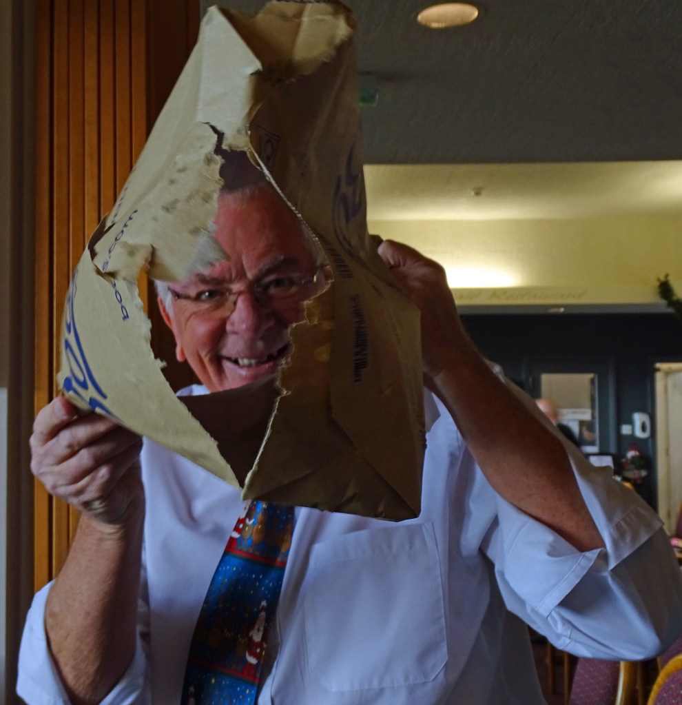 After the crash of the bottle of wine followed quickly by the crash of the tins of beer, Dave H decided yesterday at the Christmas Lunch party that brown paper bags definitely have a weak point. But they do make a great picture frame.
