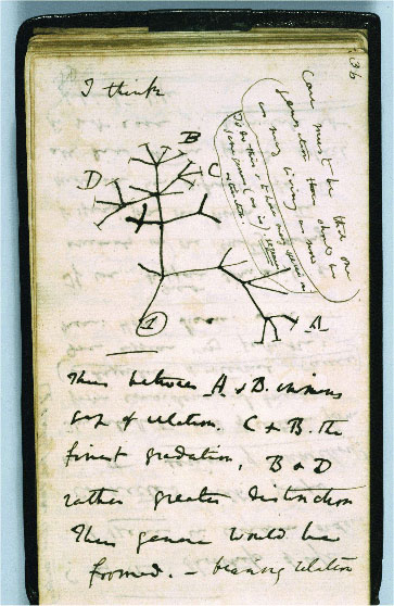 Charles Darwin’s initial Tree of Life sketch, which appears in his Notebook B, in 1837, shows his early theoretical insight of how a genus of related species might originate by divergence from a starting point (1).