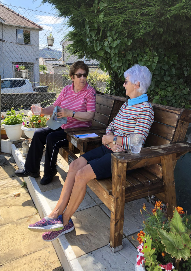 Captured on film – the moment before Esther threw a glass of water over Ann. Not really. Esther was just showing Ann one of her magic tricks with a glass of water and a hat. You should ask her, next time you see her, to show you how it works.