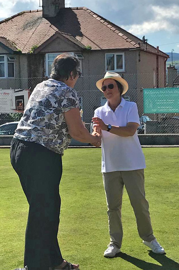 The sun shone and members turned out in their dozens on President’s Day to watch the final of the Hornby Cup and to participate in the Triples Competition (the Boys versus the Girls). The Hornby Cup was won by Ian Wilson 21:20 with Diane Lea as the Runner-Up. The Triples Competition was won by the Boys 2½:1½.