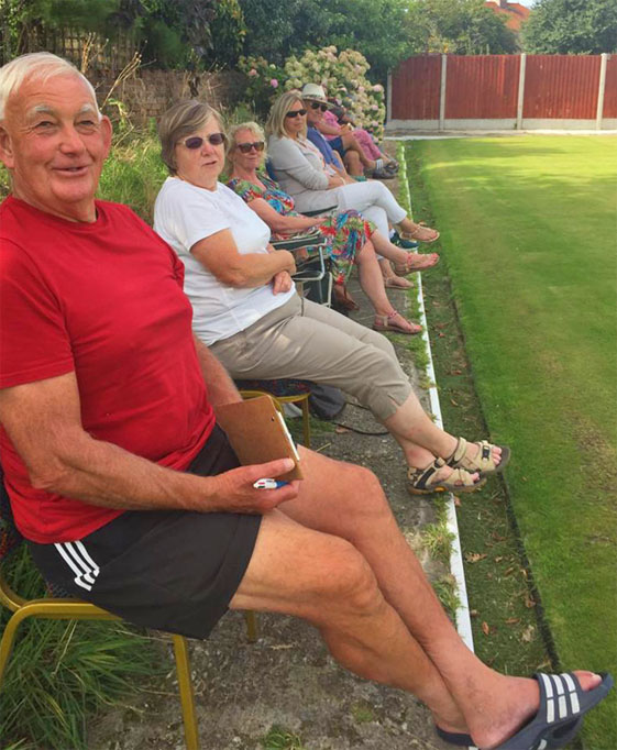 Spectating at events is a job for the professionals. Here Ian, Elaine, Kath, ClareC and TomC demonstrate the Shade and Sandal Technique.