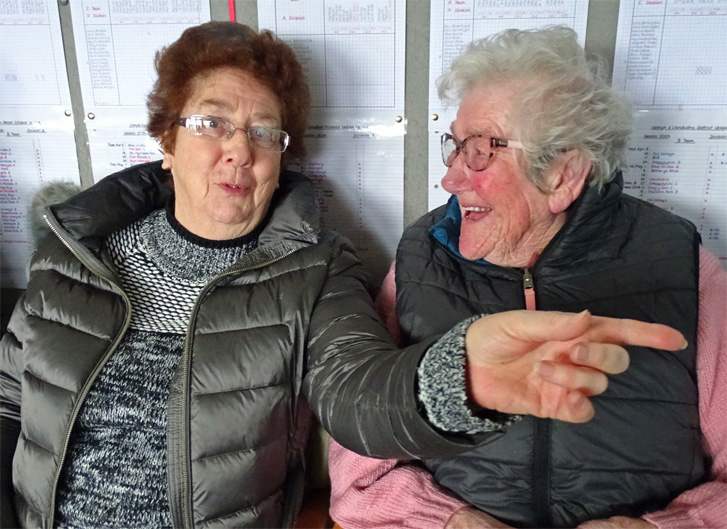 Esther, assisted by Clarice, directs team players away from the Easter Eggs