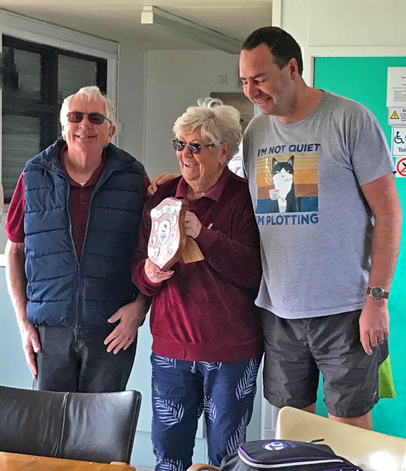 Yesterday’s Opening Fours Competition was won by Sylvia & John Farman with the Cup presented by the Dave H, the Club Secretary. The four finalists were Carole & Bunty versus Sylvia & John F. Congratulations.