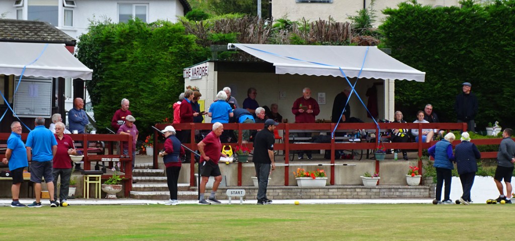 This annual competition, played between Vardre Deganwy, Caernarfon, Beaumaris and Denbigh bowling clubs, was held yesterday on our green. An overcast day, interspersed with heavy showers, did not soak the players enthusiasm. 18-games of doubles were played, with a short break for a buffet lunch in the clubhouse. The outcome was a win for Beaumaris. Congratulations to all the participants and many thanks to Conwy Town Council for providing the buffet refreshments. Come back here in a day or two or three for more photographs of the day.