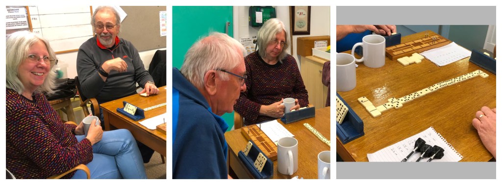 Although it looks like a set of darts had been confiscated by the dominoes players (perhaps due to the noise level from the darts teams) the darts were just resting on the table whilst their owner played a game of dominoes before tackling the dartboard. The joint game day went rather well for everyone. 2:00pm every Tuesday.