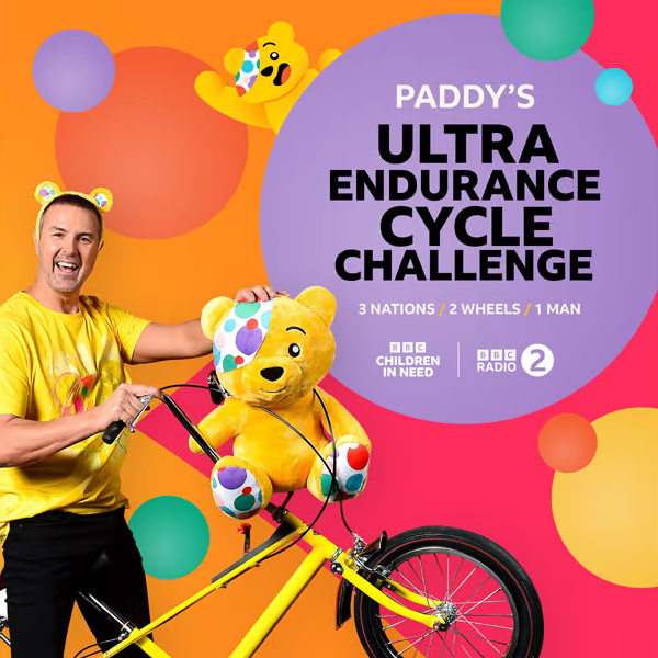 It is the build-up to Children in Need Day on Friday and Paddy McGuinness has taken on the challenge to ride from Wrexham to Glasgow on a Chopper bicycle. Click Here to go to the BBC website “Paddy Tracker” where you can follow his progress live.