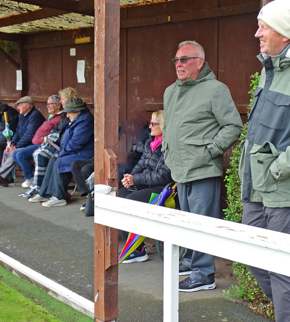 There were plenty of people at yesterday’s event to prevent too much rain falling, and to cheer on the participants in the Individual Merits competition. Ian took part in the Quarter Final round and was pitched against the President himself. No, not Donald Trump, but David Podmore. Despite a well-contested game, it was David who won through to the next round where he lost to the eventual winner who was John Davies from Min y Don Bowling Club. The day ended with the President (still not Donald Trump) presenting cups and/or empty envelopes (representing money) to all the teams and individuals that had won the league’s accolades during the season.