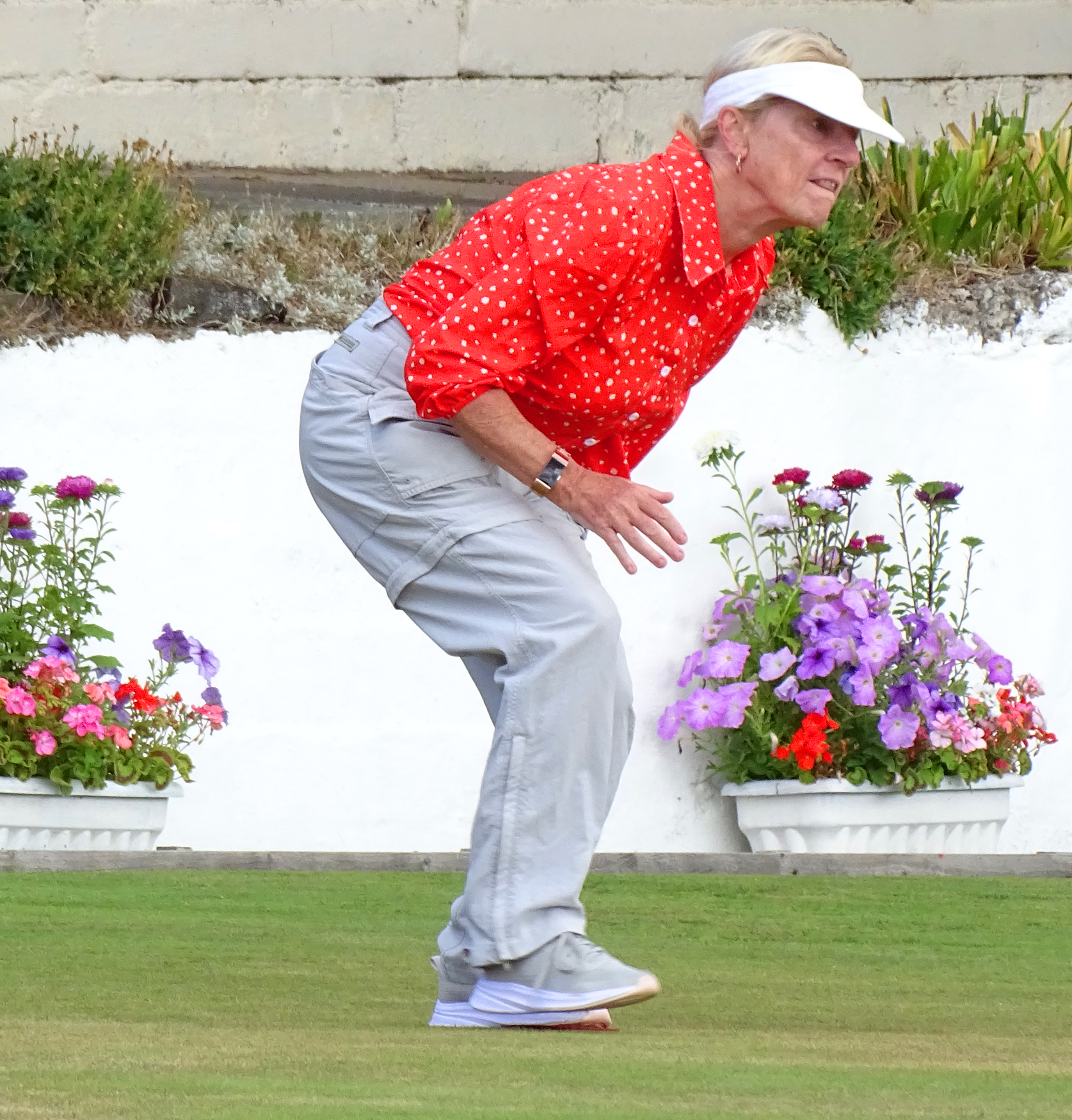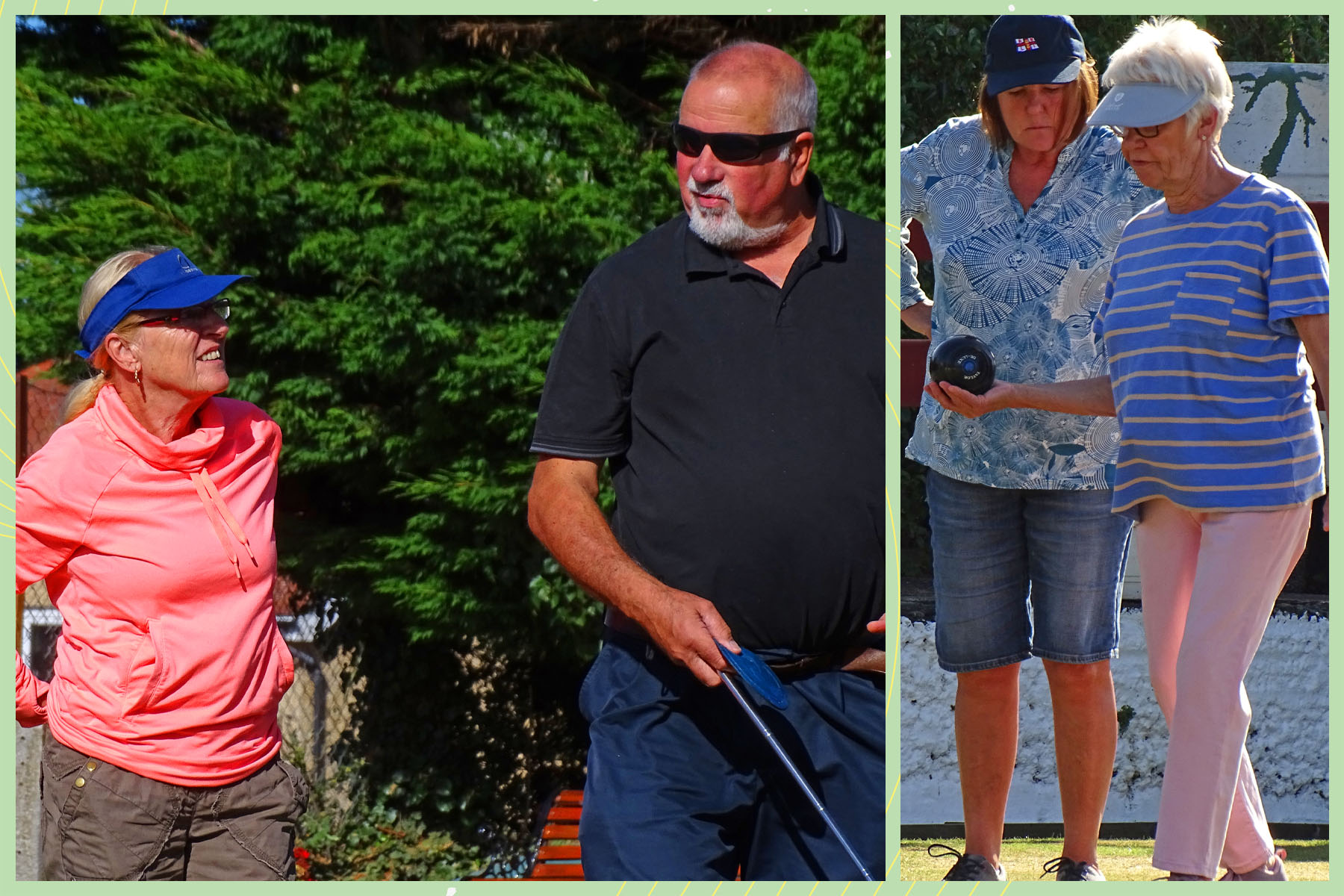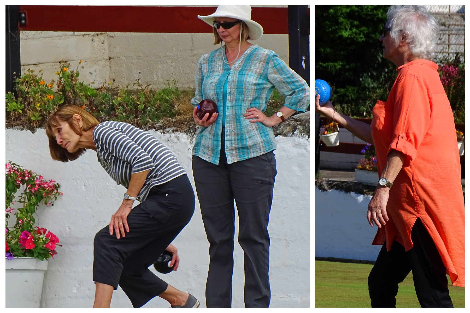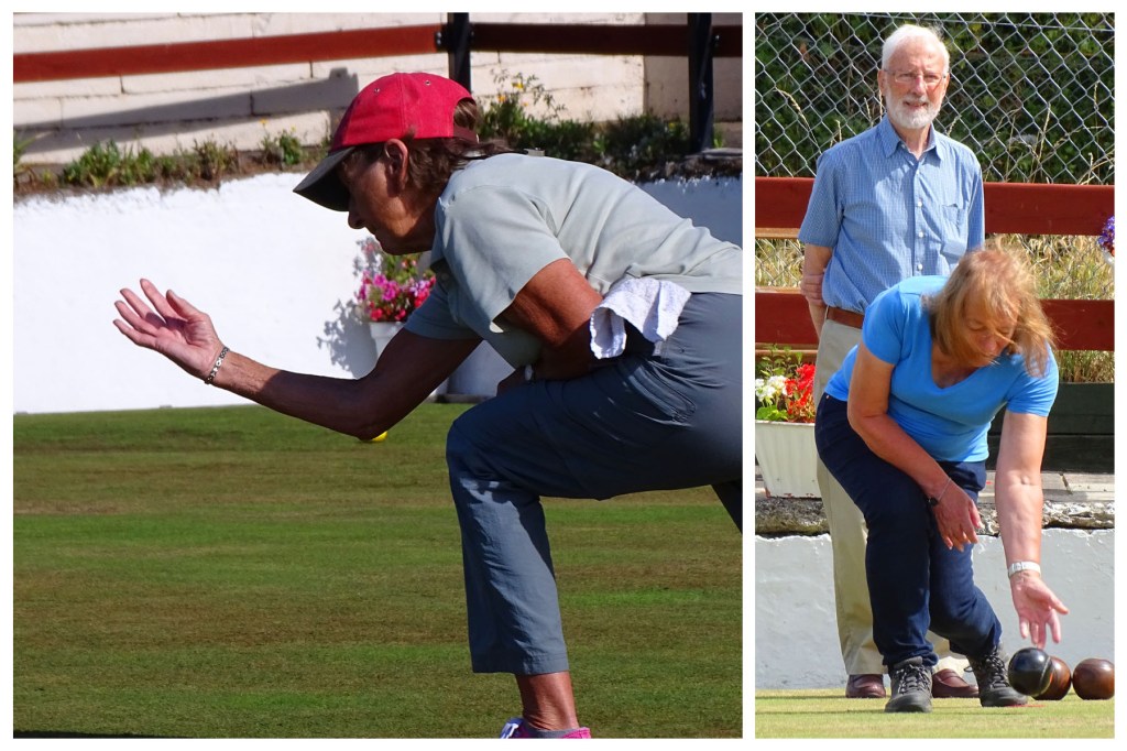 By aiming to split entries into teams of fairly equal ability, and playing in “doubles” throughout, the intention was for relatively new players to receive as much assistance and coaching as possible. The games were played in lanes across the green, with delivery and target mats set, hopefully for players to adjust to length and line more easily, and discover the effect of bias on the green.