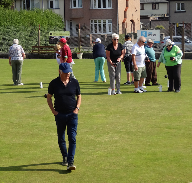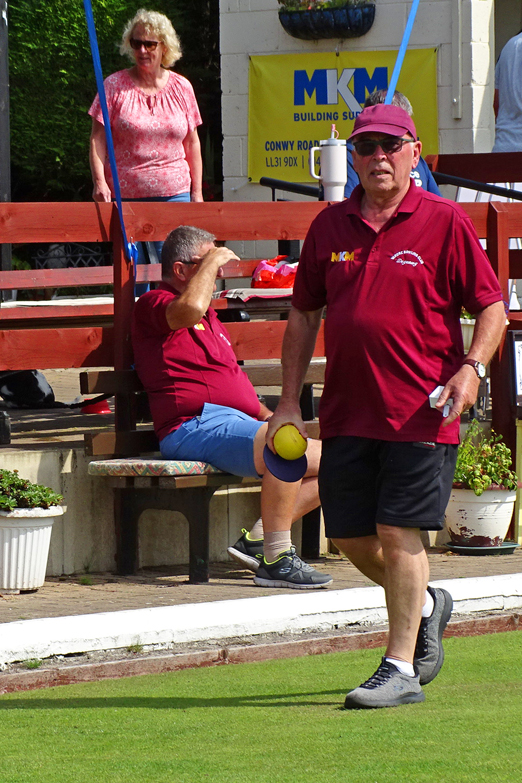 The quotation “Where does he find the time?” is relevant, as apart from entering WCGBA competitions, he is often present supporting local Club competitions, on the odd occasions he has a spare date in his calendar. Last Sunday he partnered Geraint Booth in a Doubles Competition in Holyhead. Tuesday evenings he has been heavily involved in the recovery of Conwy B.C. in the “Super” league, being one of several new players, but also instrumental in the arrival of others. He also plays for a team in the Frodsham area on Friday evenings, and his form for them means inclusion in the Mid-Cheshire squad in the Federation League, with monthly matches on Sundays throughout the summer. One wonders if he completes more miles travelling in his car to various greens, or walking on them in the course of his many matches over a season. Whatever the answer, we hope you do plenty of walking over the Caernarfon green on Sunday, and progress to the later rounds…. and then of course qualification for the BCGBA finals… and MORE miles to negotiate.