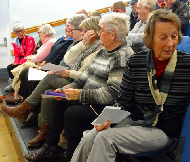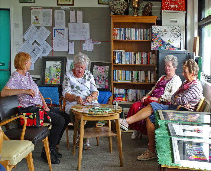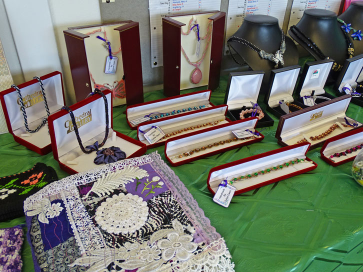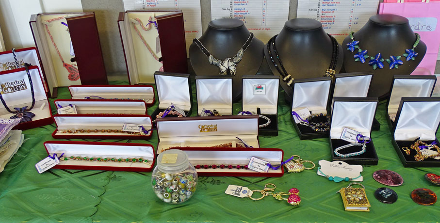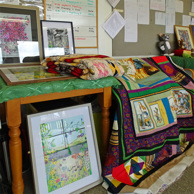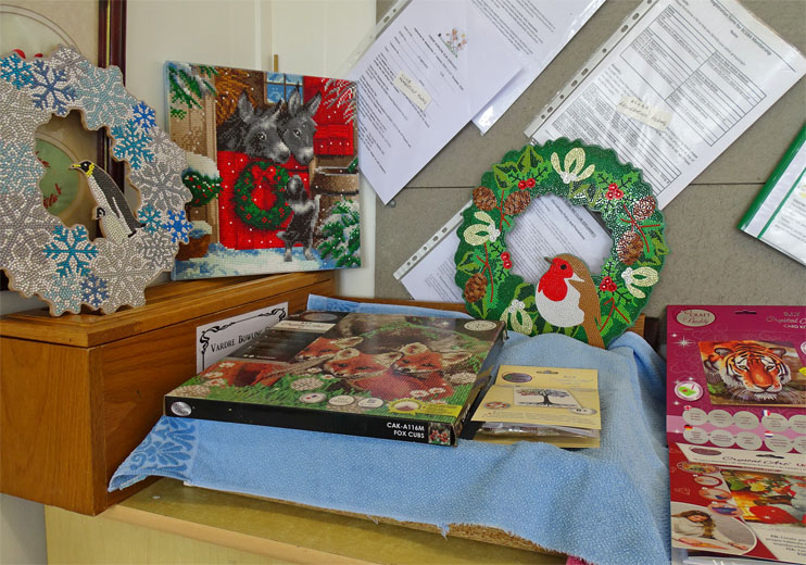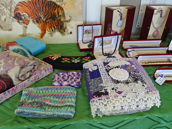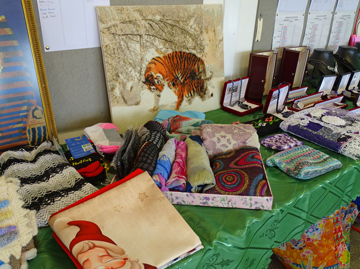 The Knit and Natter Group involves: Clarice; Rhona; Sylvia; Hazel; Bunty; Gay; Kate; Marina; Kathy; Shan; Rita; John F; Sue S. The Arts & Crafts Exhibits were produced with love by: Sylvia (Jewellery); Sue S (Poppies); Bunty (Brooches); Jenny (Pictures & Xmas Cards); Rita (Felt work & Fairies); Shan (Paintings); Gay (Quilts; Toys; Knitted Items); Rhona (Baby Blankets); Everyone (Vardre Beanies).