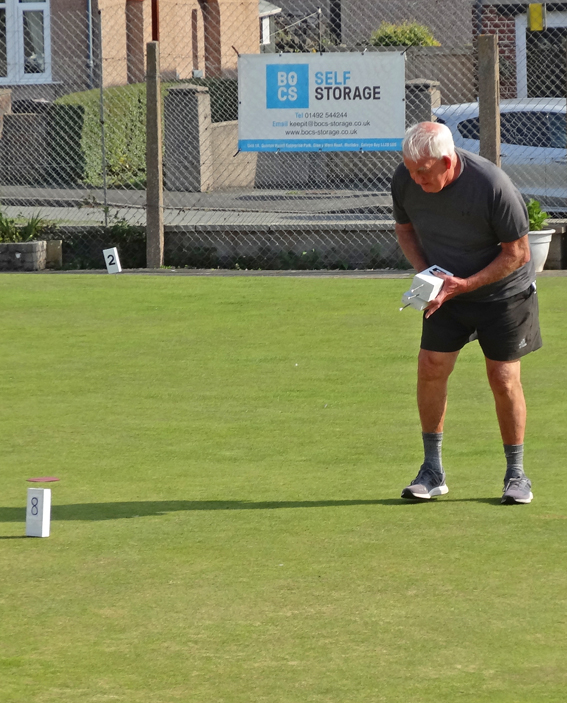 In the Clwydian Senior Citizens Cup games played on Friday 13th June, our B and D teams both received Byes. This competition is handicapped this year and our A team played Denbigh A at Abergele with a +20 aggregate already on the scoresheet. In a match where we gained 6-winners, we won 180-175, the handicap then increasing our score resulting in a 25-point margin of victory. The C team travelled to Dyserth to play Meliden A with a +10 handicap on our opponents. Again, this was not needed as our C squad won by a 55-point margin without the assistance of the handicap. Our opponent’s plight was not helped by being 2-players short!