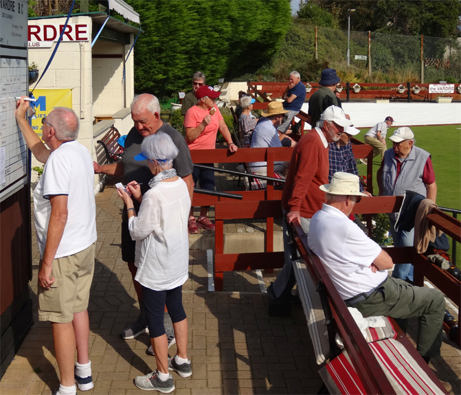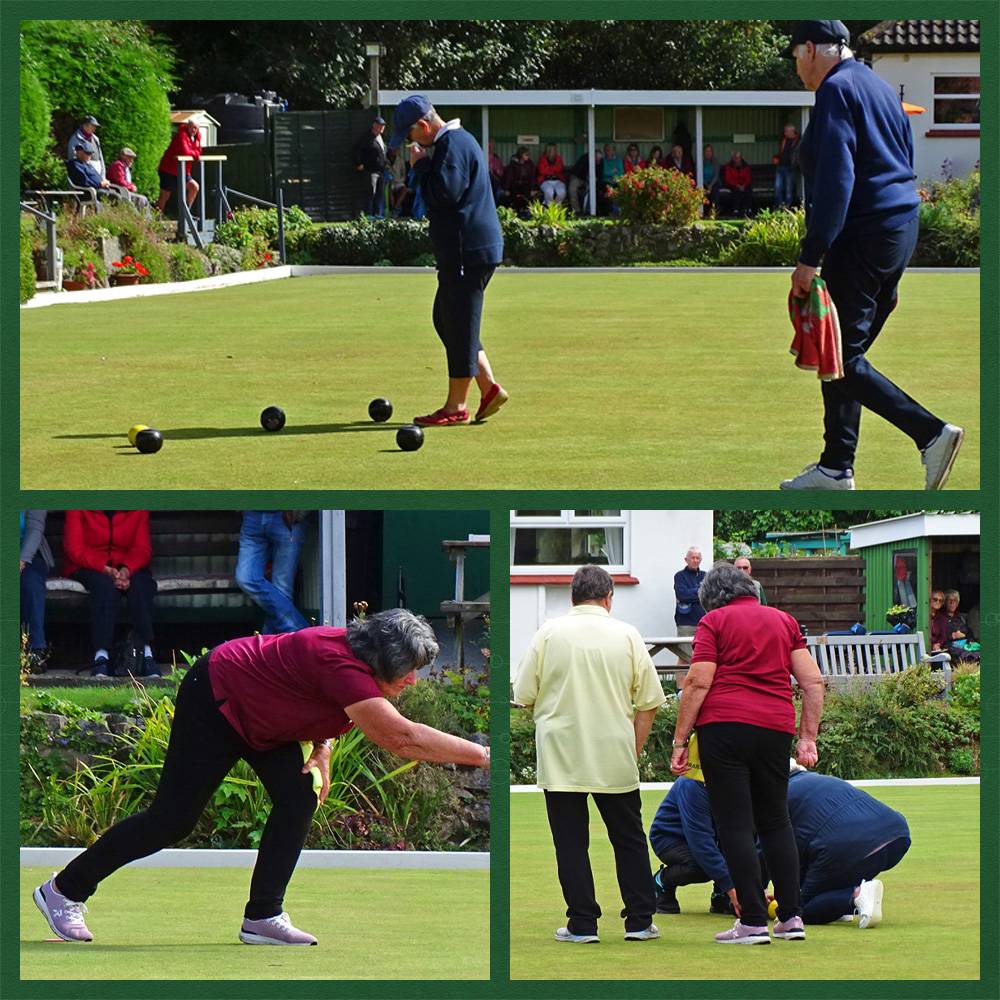 At Vardre we hosted Qualifying Rounds in 4 different competitions in 8 separate sessions Sunday through to Wednesday with around 100 bowlers in total, plus about 20 different dogs!! One of the early arrivals on Sunday was a couple from Shropshire, who, on my recommendation, took their dog up on the Vardre mountain for a walk prior to the gentleman playing in the Bill Hughes (men only) qualifying event. He returned to remark on the exceptional views he had witnessed. Next visitors, around 9am Sunday, were a young couple from Huddersfield, who had left Yorkshire at 6:30am. He stayed to play, but the lady had to drive over to Penrhyn New Hall to register and play in the Ladies Rose Bowl. The couple had booked a remote cottage in Llanfairfechan for the week. There were bowlers everywhere last week taking up quite a chunk of the holiday accommodation in the area and, according to initial feedback from those who attended, they will all be back next year and bringing colleagues.