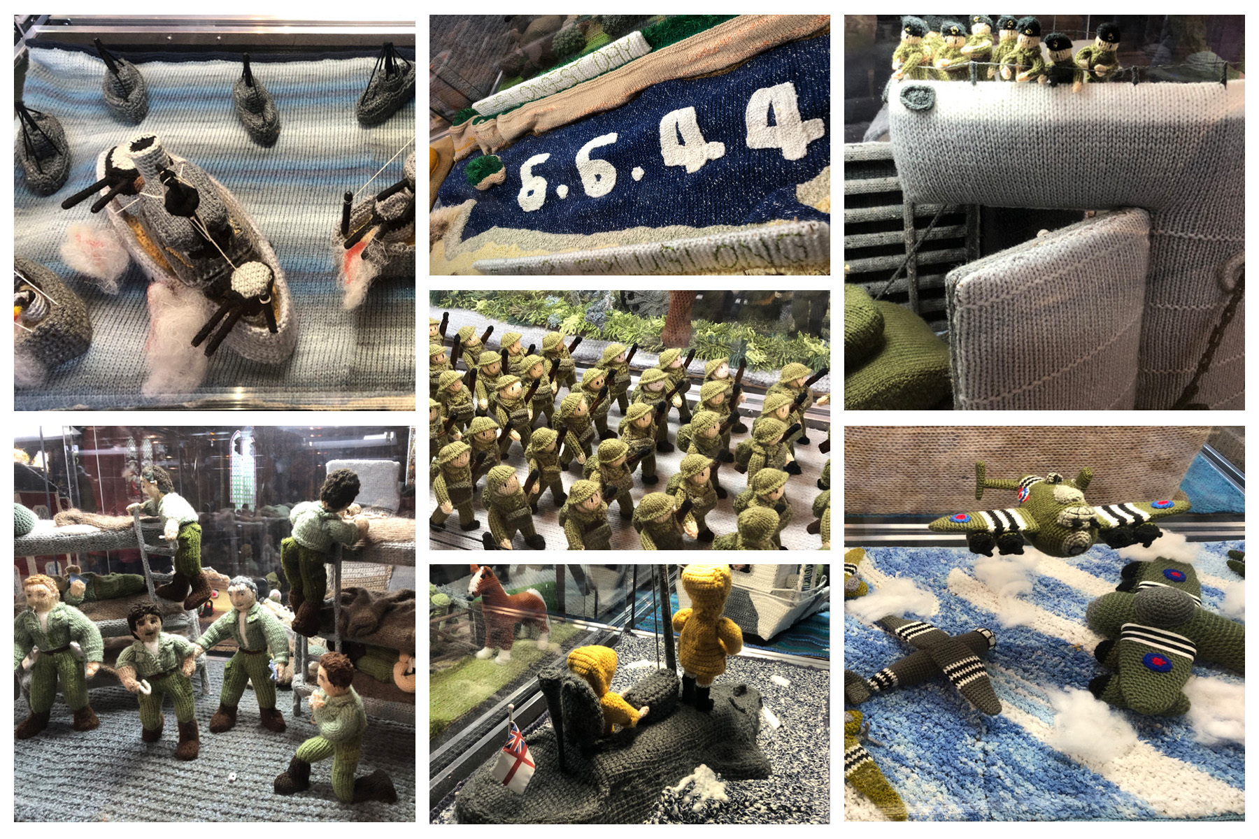 This marvellous display can be seen at Trinity Church in Llandudno until 27th October. It is ” a unique commemorative event marking the 80th Anniversary of the D-Day landings in Normandy. It is an 80-metre 3D wool artwork depicting scenes from the Normandy invasion and the 80-day march to Paris.” Produced by over 1,000 contributors from around the world, it would otherwise have taken one person over 11 years to produce on their own. Currently on a tour of France, Britain and the USA, here are a few photos of snippets from some of the scenes that are all knitted: