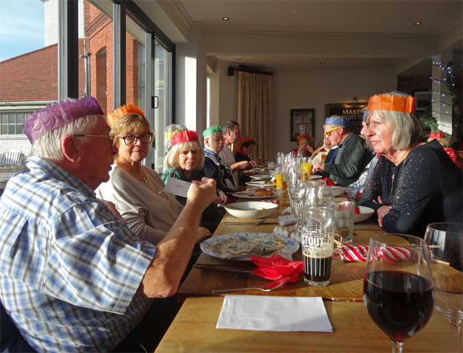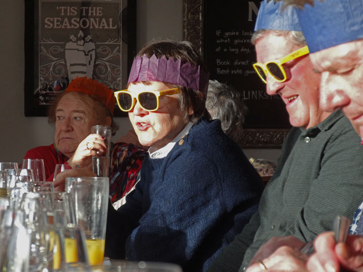 It was a good weather day for the Christmas lunch with the sun shining on everyone. The sun was so bright and low in the sky that some of the party were issued with yellow sunglasses to combat the glare. Here are some photos from the event: