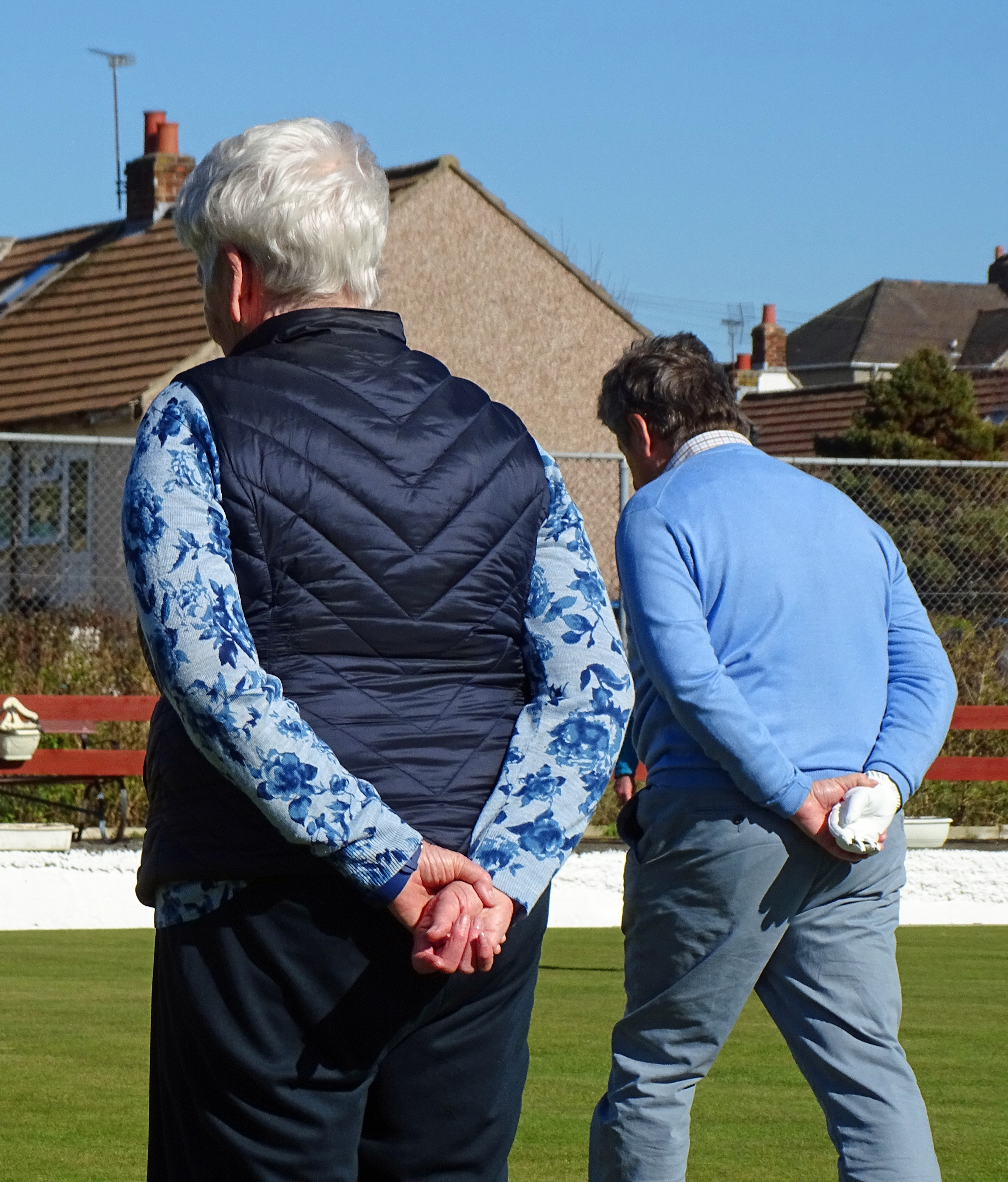 Mary, the President, kick-starts the 2022 Season by sending out a jack and a bowl, but she was too quick for the photographer so was able to retrieve them both before the evidence could be recorded on film. However, in the final photo (above), you can clearly see that from her standing position, Mary was able to pick up both the jack and bowl together because the bowl had finished so close to the jack. Well done Mary and sorry about the tardy photography. Ooops. Note to self: Must try harder.