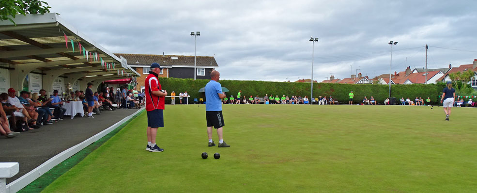After 5-days and evenings of tough competition, all the Finals of each competition will be held today at Rhos Park Bowling Club – the Organiser of this great Festival. The Team of Organisers has done a superb job, and supported by local clubs: Vardre Deganwy, Rhos-on-Sea, Penrhyn New Hall, Mochdre Park, Min y Don, Old Colwyn and Eirias Park, where many preliminary rounds and some Quarter Finals have been held.