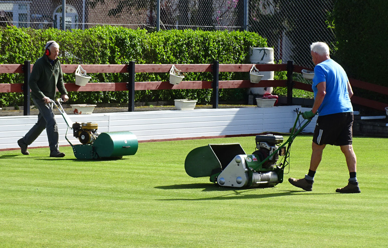 In the meantime, here’s a photo of David L and Ian practising their Synchronised Mower Mowing, also to be performed as part of the opening ceremony. Well, maybe not, but only because they have too much else to do on our behalf.